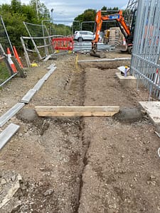 Several contract firms had been working on the build and upgrade as part of the Currie Substation Extension Project located in Currie, Edinburgh. MCS undertook several jobs at that sub-station including road formation, kerbing and footpaths. Below are some images of a footpath we had built.